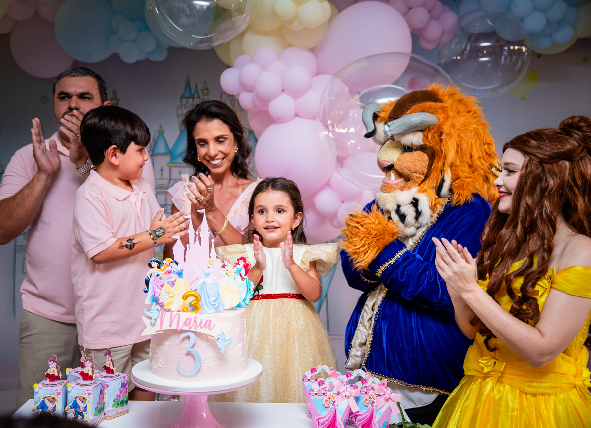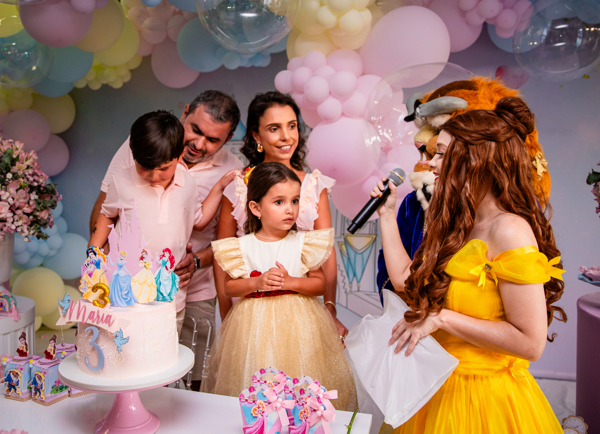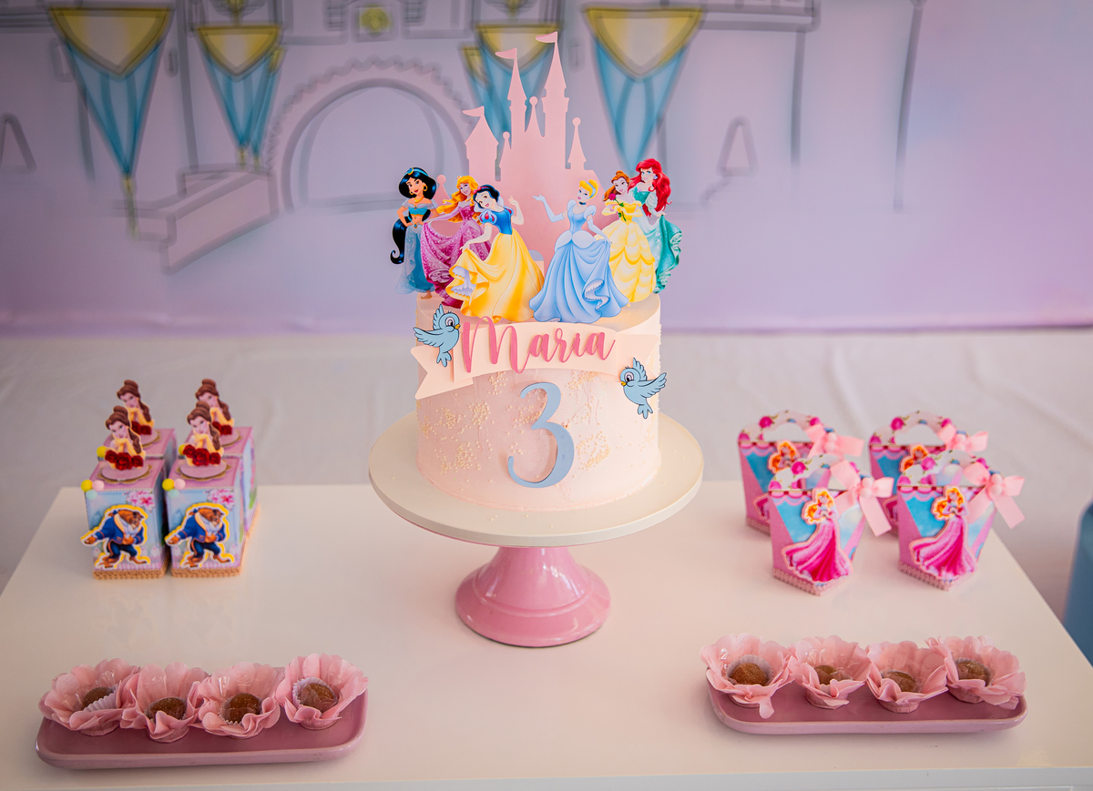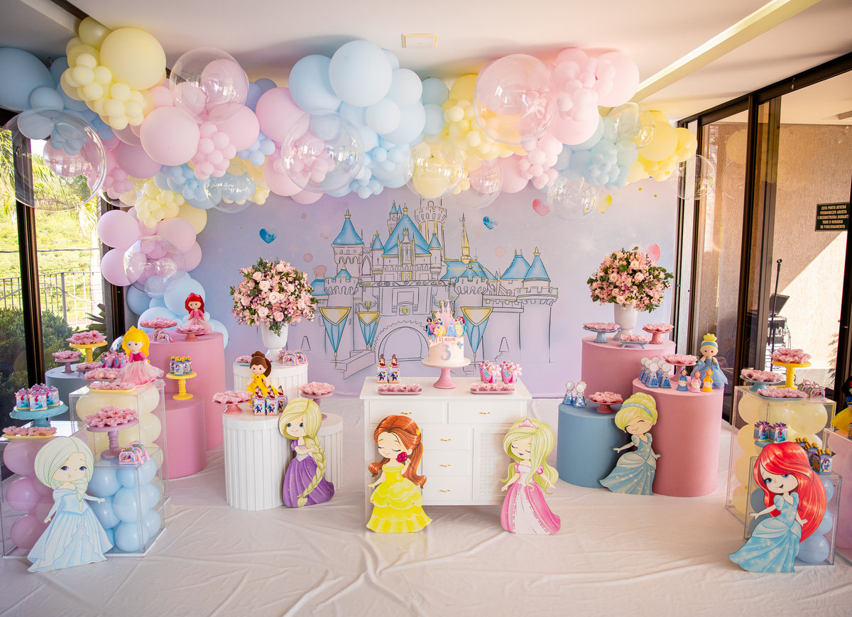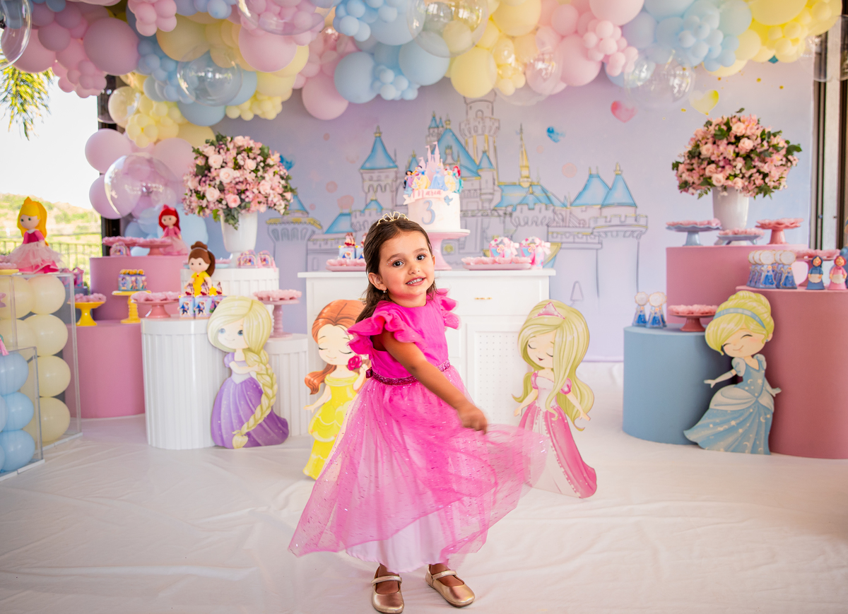 Uma princesa comemorando seus 3 aninhos com seus personagens preferidos!