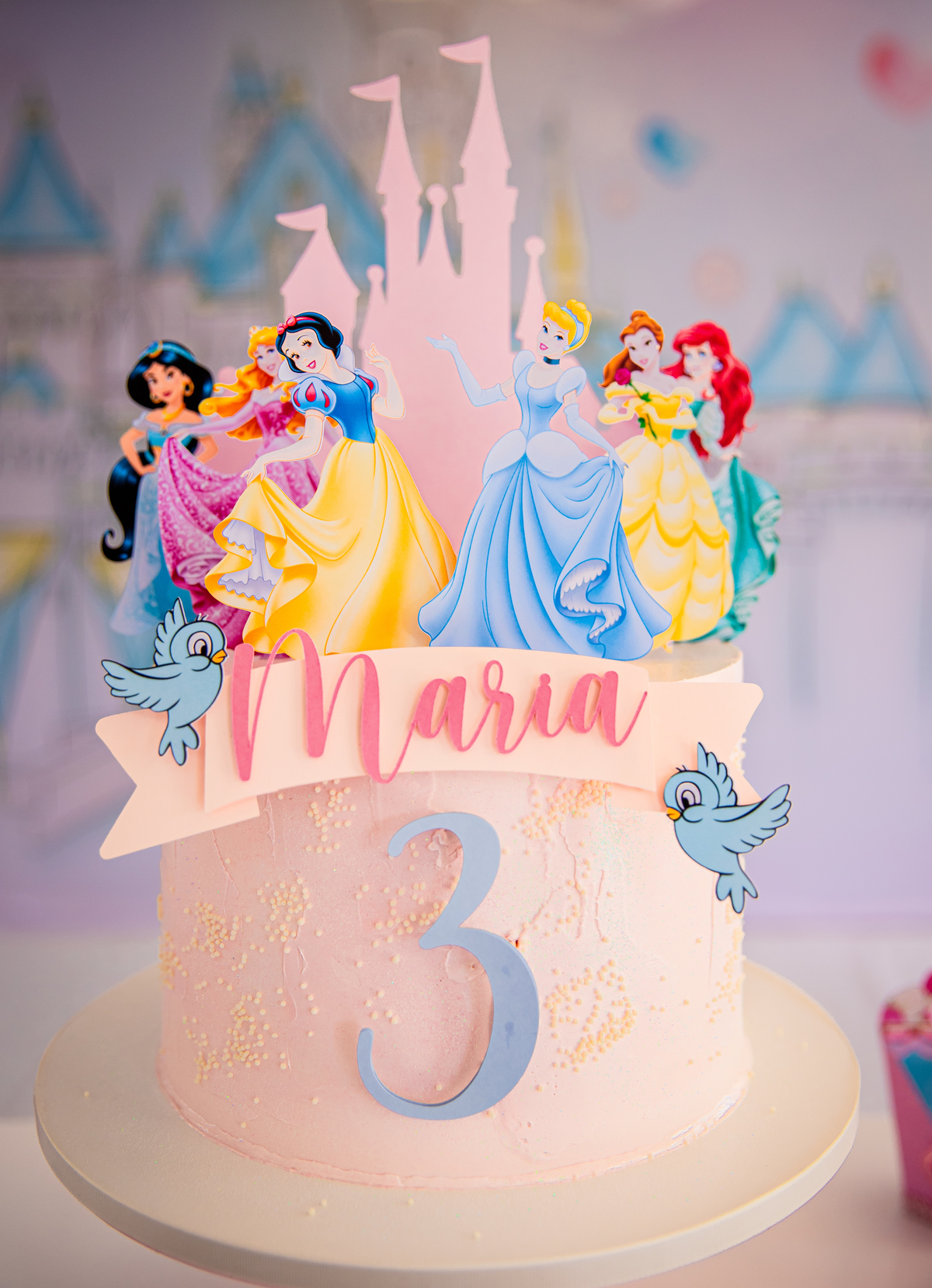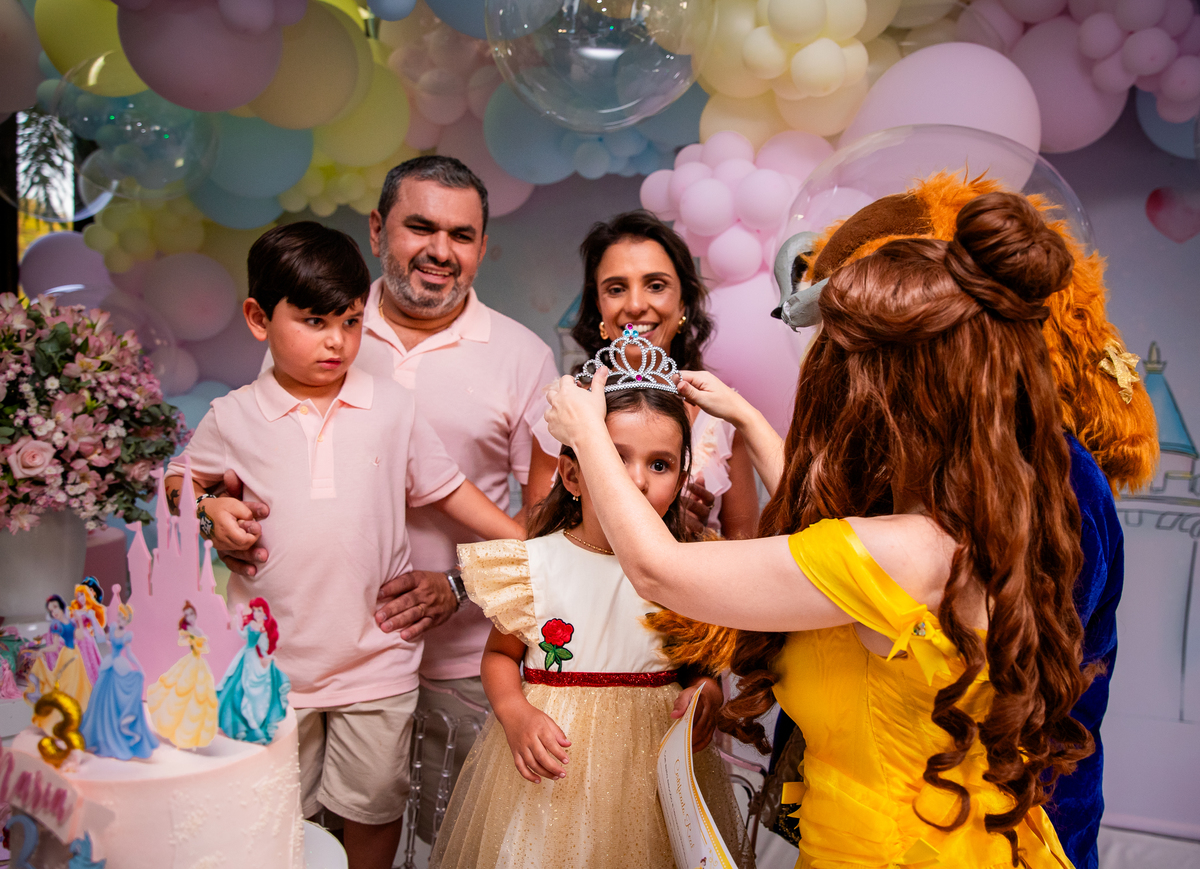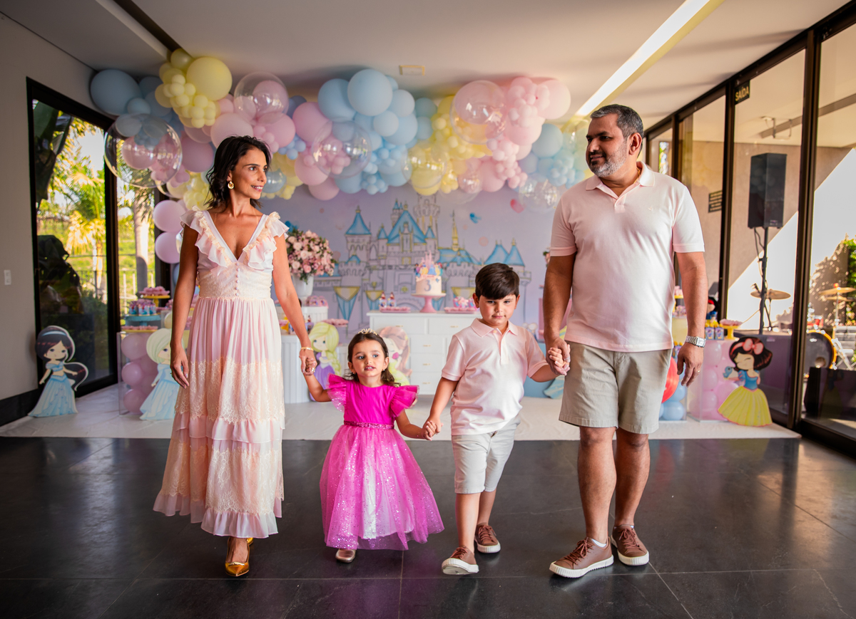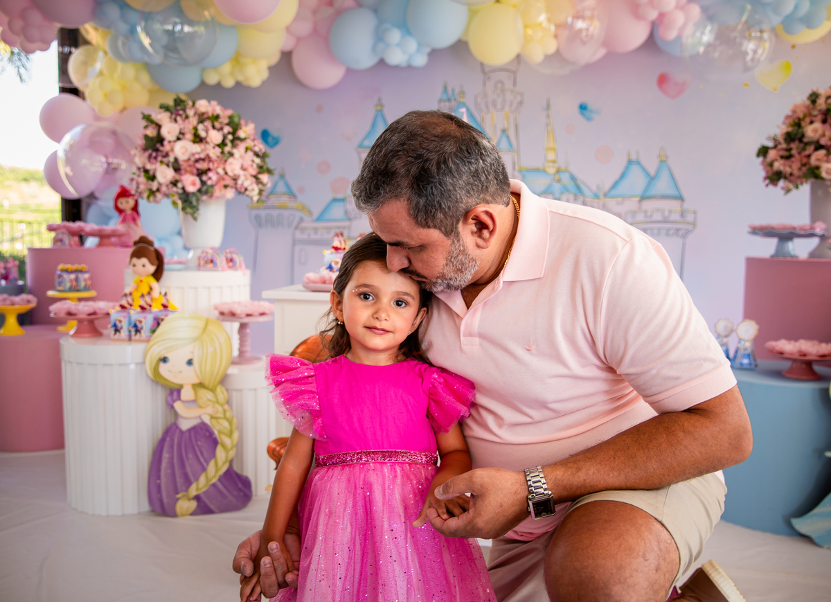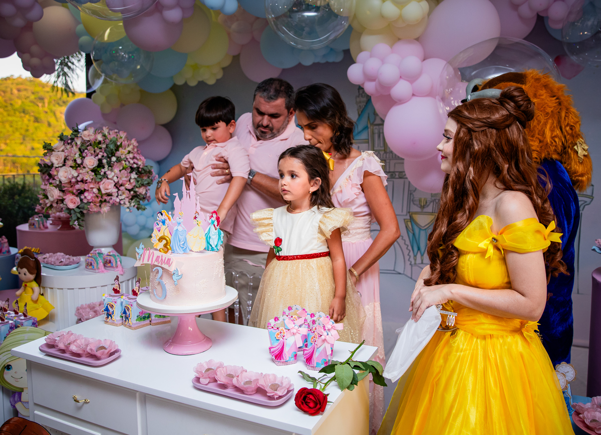 Uma princesa comemorando seus 3 aninhos com seus personagens preferidos!